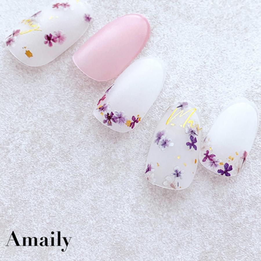 人気の押し花ネイルや手描きフラワー 17年イチオシの花を散りばめた春ネイルデザイン コラム 緑のgoo